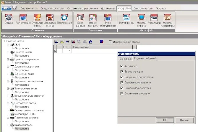 Пример настройки ПО Frontol: