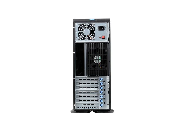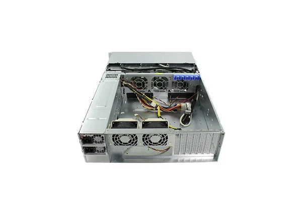 Установлен основной и резервный модуль питания мощностью 1000 Вт с горячей заменой. Для уменьшения риска выхода из строя используются два SSD, объединённые в RAID 1. При подключении большого количества камер необходимо задействовать 16 HDD для распределения нагрузки (приобретаются отдельно). Рекомендации по использованию HDD.